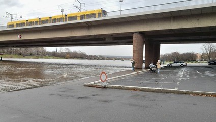 Wegen des ansteigenden Pegels wurde seit Sonntag, 24. Dezember 2023, 22:45 Uhr die Sperrung des Terrassenufers zwischen Steinstraße und Kleiner Packhofstraße erforderlich. Eine Umleitung wurde eingerichtet. Sie führt von Ost nach West über Steinstraße, Pillnitzer Straße, St. Petersburger Straße, Wilsdruffer Straße, Freiberger Straße, Hertha-Lindner-Straße, Ostra-Allee, Kleine Packhofstraße zur Devrientstraße. Die Stadt Dresden berichtet des Weiteren, dass durch die noch bestehenden Sperrungen im Stadtzentrum auf Grund der Advents- und Weihnachtszeit die Umleitungen angepasst werden mussten. Entsprechende Änderungen sind ausgeschildert.