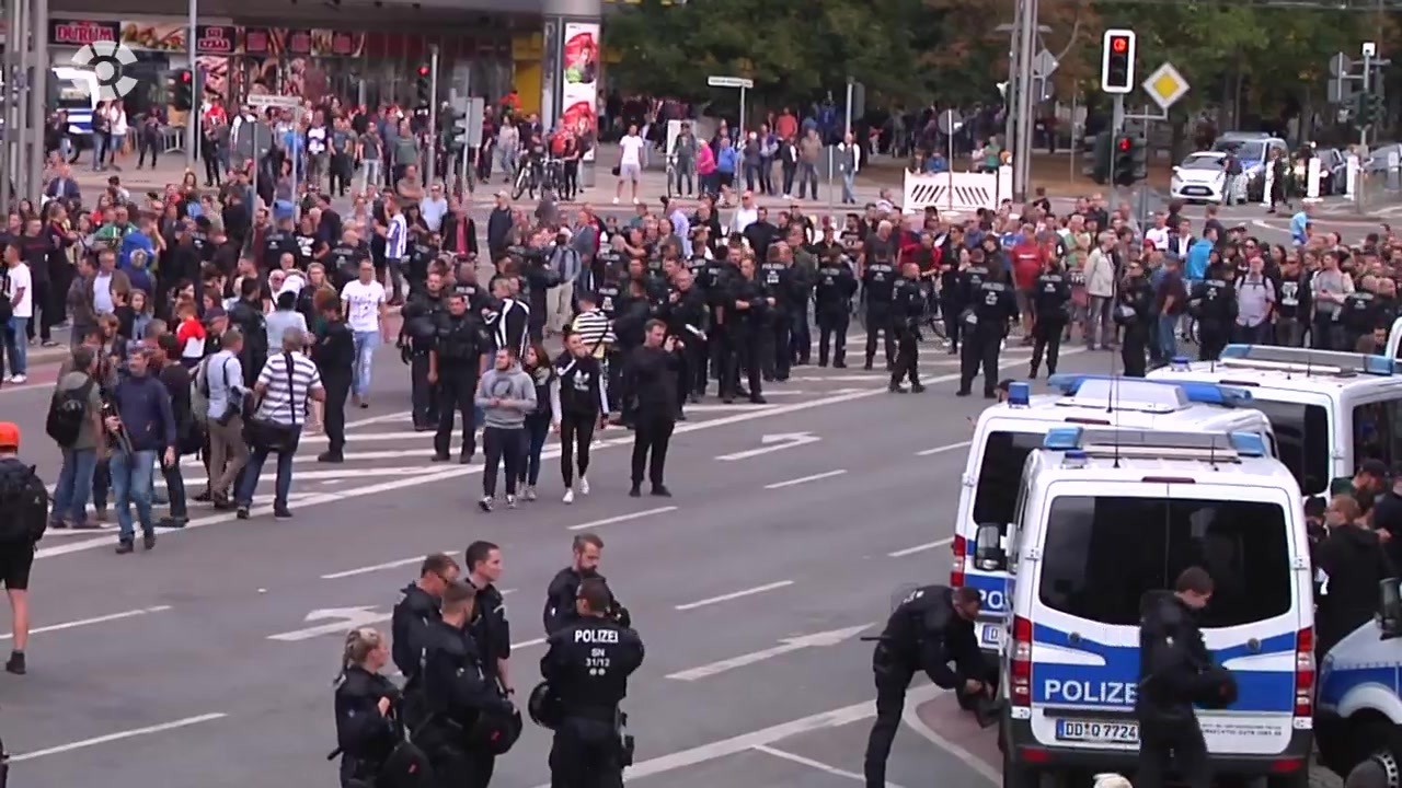 Außerdem bewarfen sich beide Demos mit Flaschen und Pyrotechnik. Der Bürgerbewegung „Pro Chemnitz“ gelang es dabei auf die Gegenseite zu kommen und Gegendemonstranten anzugreifen. Der Polizei gelang es wiederum mittels Wasserwerfern die beiden Lager erneut zu trennen. Daraufhin zogen die Teilnehmer der rechtsorientierten Demonstration durch die Innenstadt. Immer wieder ertönten dabei lautstark rechte Parolen, wie „Ausländer raus“.