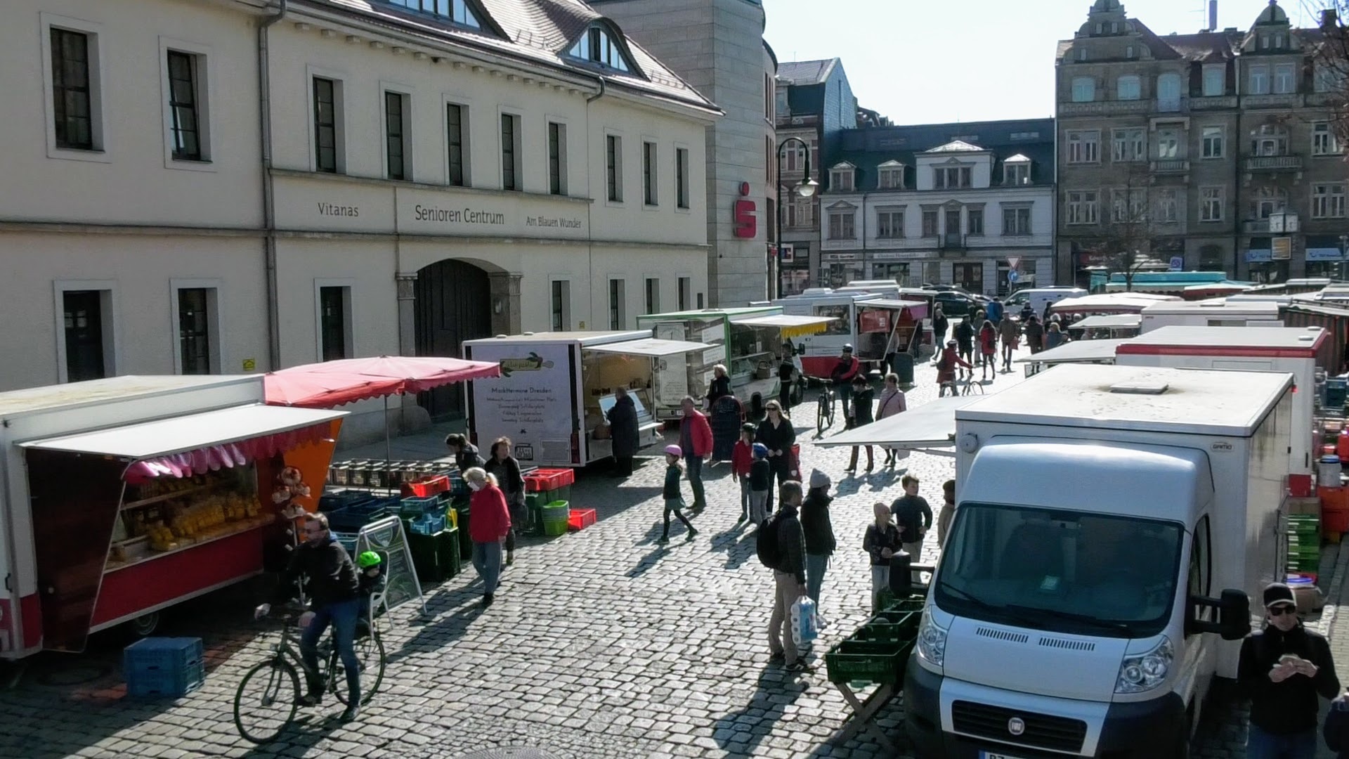 Sachsen - Die "Wochenmärkte" dürfen unter strikten Auflagen in Sachsen wieder öffnen. SACHSEN FERNSEHEN hat sich einen Eindruck verschafft und die mobilen Verkaufsstände auf dem Schillerplatz in Dresden-Blasewitz besucht. Viele Händler und Direktvermarkter aber auch Kunden finden es gut, dass das Verbot von Mitte März gelockert wurde. Vorangegangen waren laute Proteste sowohl auf Anbieter- als auch Verbraucherseite.