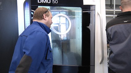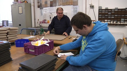 In diesem ersten Arbeitsmarkt können sich die Angestellten der Behindertenwerkstatt gleich ausprobieren. Unter demselben Dach ist auch eine Inklusionsfirma, die zur Lebenshilfe gehört. Von den 30 Angestellten, die hier arbeiten, haben 12 eine Behinderung. Diese Firma stellt Kunststoff-Spritzguss-Erzeugnisse für die Industrie her.
