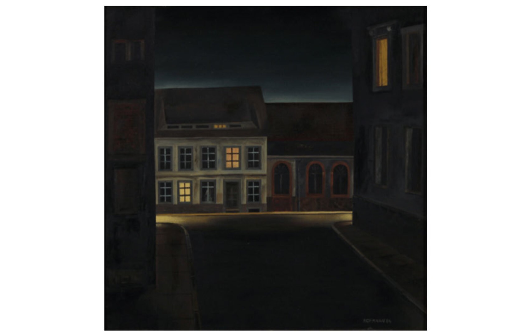 (Günter Hofmann – Nächtliche Straße II, 1984, Öl/Hartfaser)