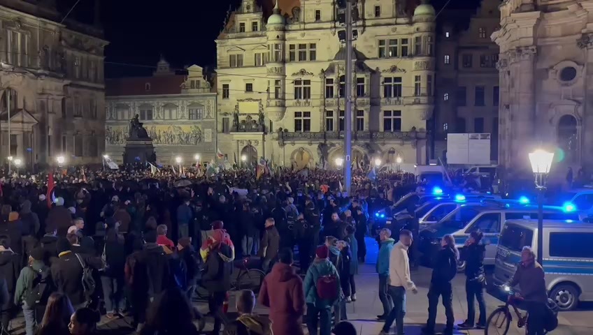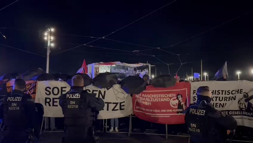 "Im Zusammenhang mit dem umfassenden Versammlunggeschehen führt die Polizeidirektion Dresden heute Abend einen Einsatz durch. Unsere Aufgaben sind: Recht auf Versammlungsfreiheit sowie Protest in Sicht- und Hörweite gewährleisten. Gleichzeitig wollen wir natürlich Auseinandersetzungen unterbinden."