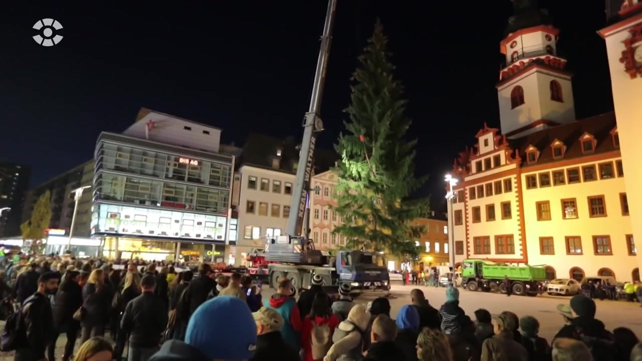 Seit dem Wochenende schmückt die diesjährige Weihnachtsfichte den Chemnitzer Markt.