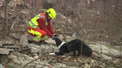 Biggs hat Erfolg und Frauchen Maria belohnt ihn mit einem Leckerli. Heute findet Biggs nur sein Spielzeug. Doch bald könnte er unter Schutt einen Menschen finden und ihm damit das Leben retten.