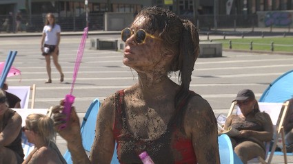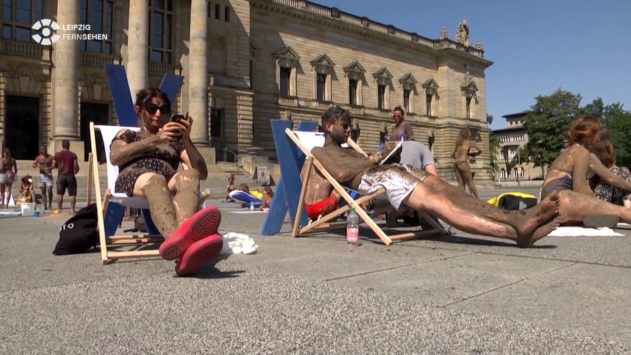 Mit einer außergewöhnlichen Aktion hat der Verein Beltretter vor dem Bundesverwaltungsgericht in Leipzig auf sein Anliegen aufmerksam gemacht. Dargestellt ist eine typische Strandszene, nur dass die Badegäste am ganzen Körper mit Matsch verdreckt sind. Mit der Aktion wollen die rund 40 Teilnehmer auf die Auswirkungen des geplanten Ostsee-Tunnelbaus, dem Fehmarnbelttunnel, aufmerksam machen.