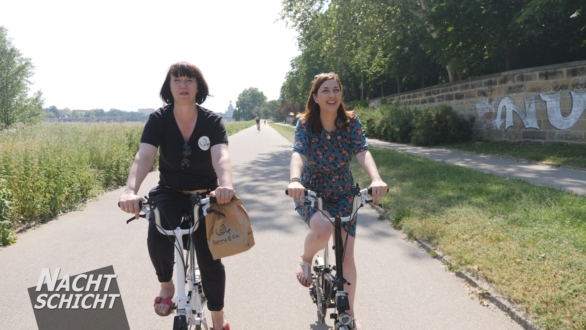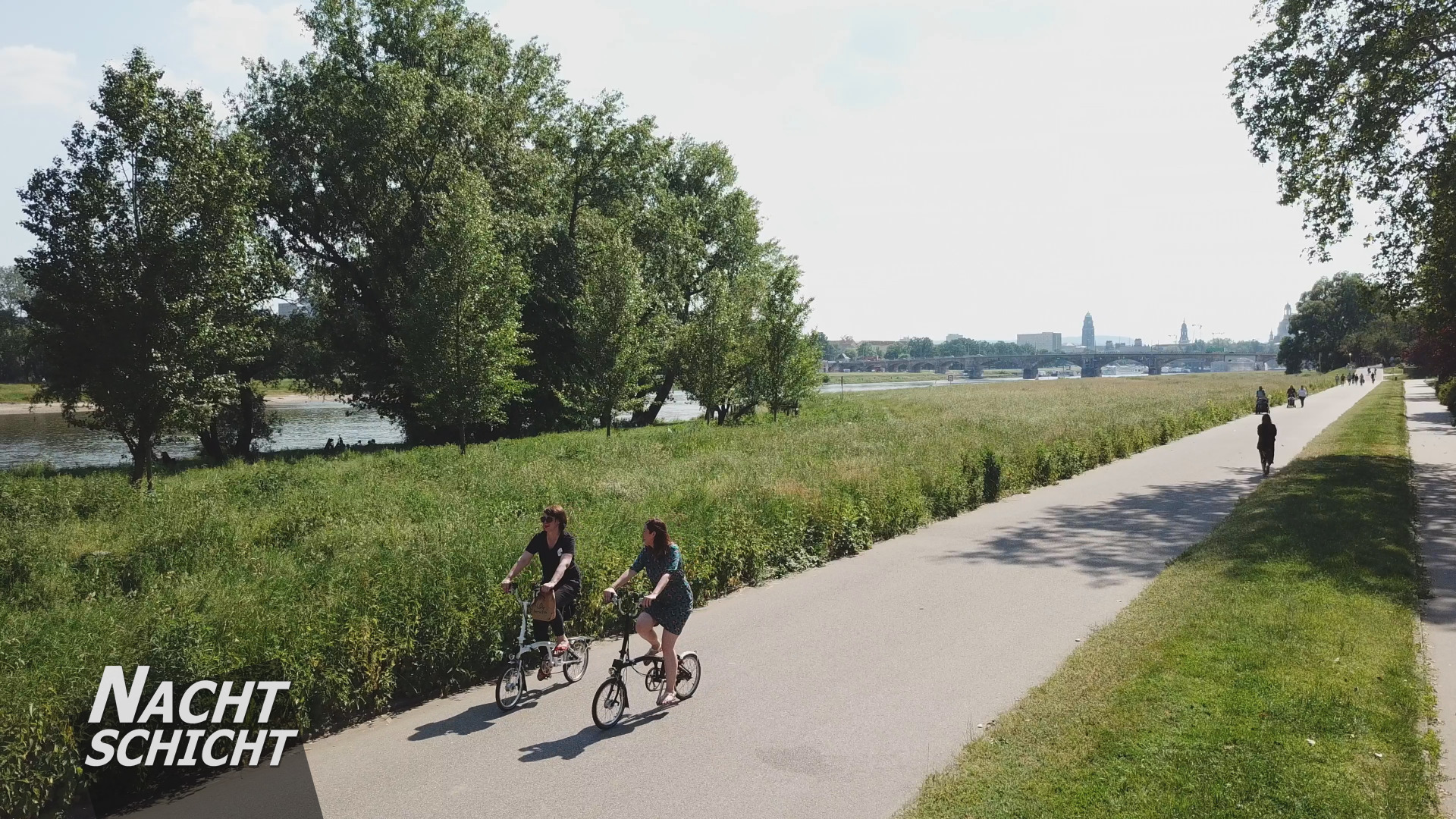 Dresden - In der neuen Folge unternehmen Sophia Matthes & Susanne Meyer-Götz eine Fahrradtour an der Elbe. Im Gepäck: ein Grillpaket von Curry & Co. Sie treffen sich zum Grillen u.a. mit Nora Weinhold vom Ordnungsamt. Außerdem Thema: Müllcontainer am Elbufer.