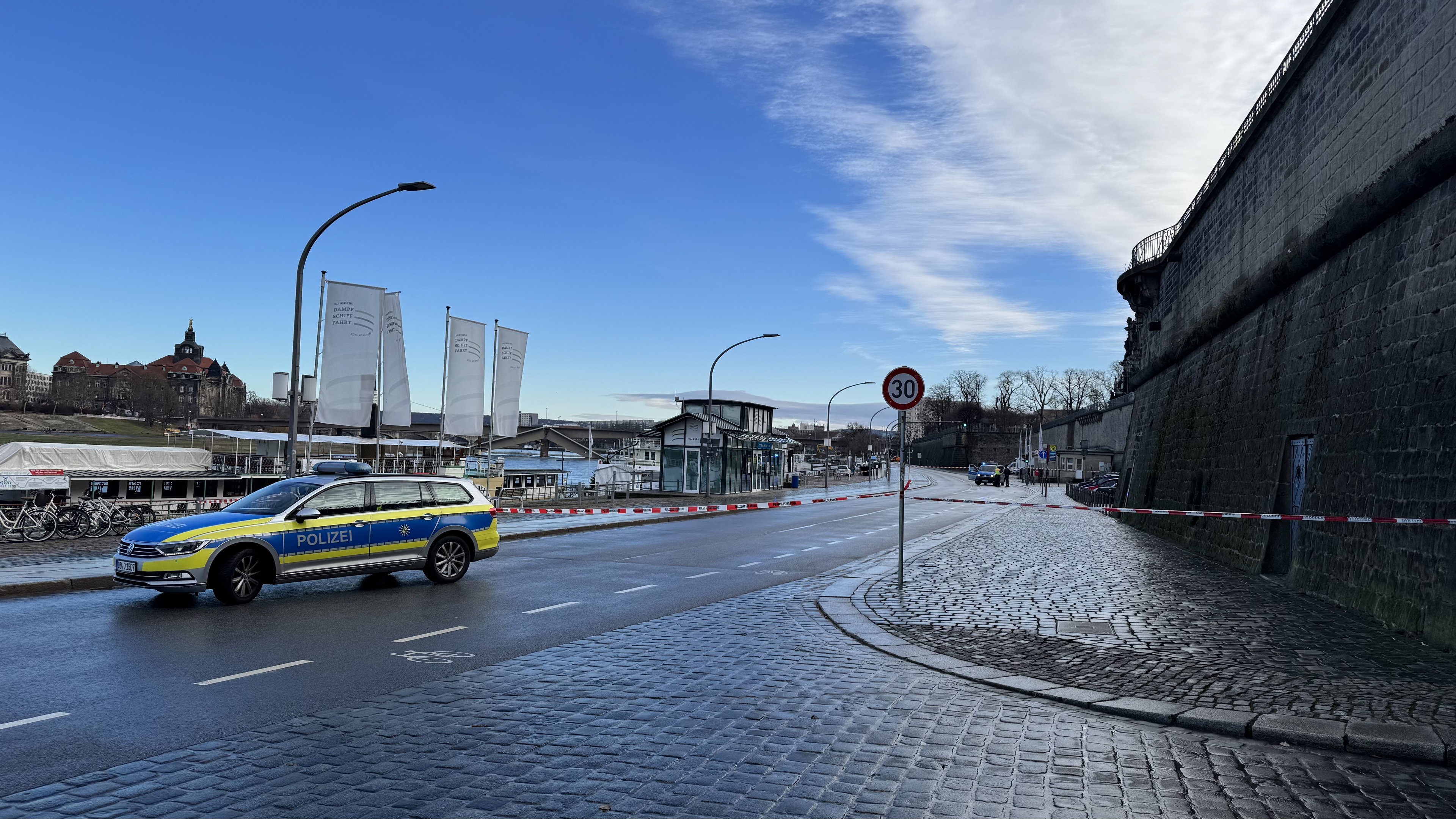 Die Polizei Dresden hat den unmittelbaren Bereich abgesperrt und Spezialisten des Kampfmittelbeseitigungsdienstes angefordert.