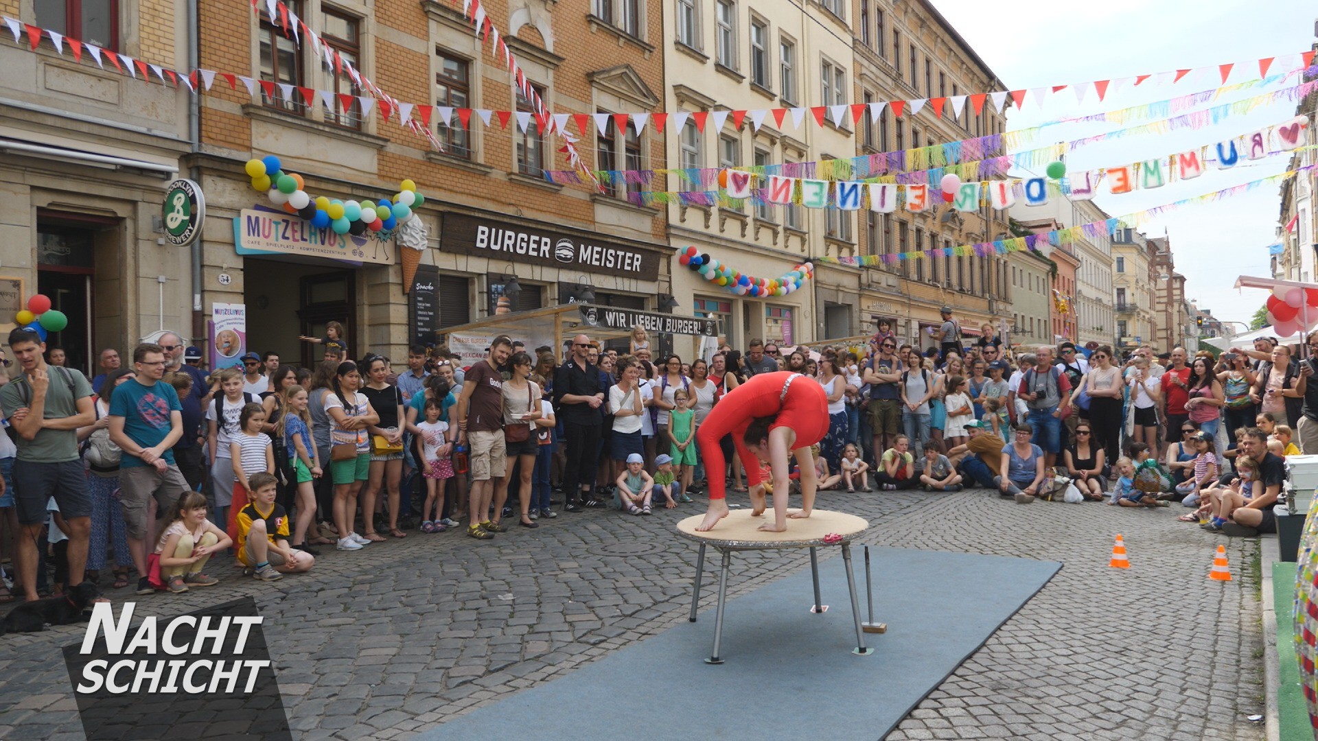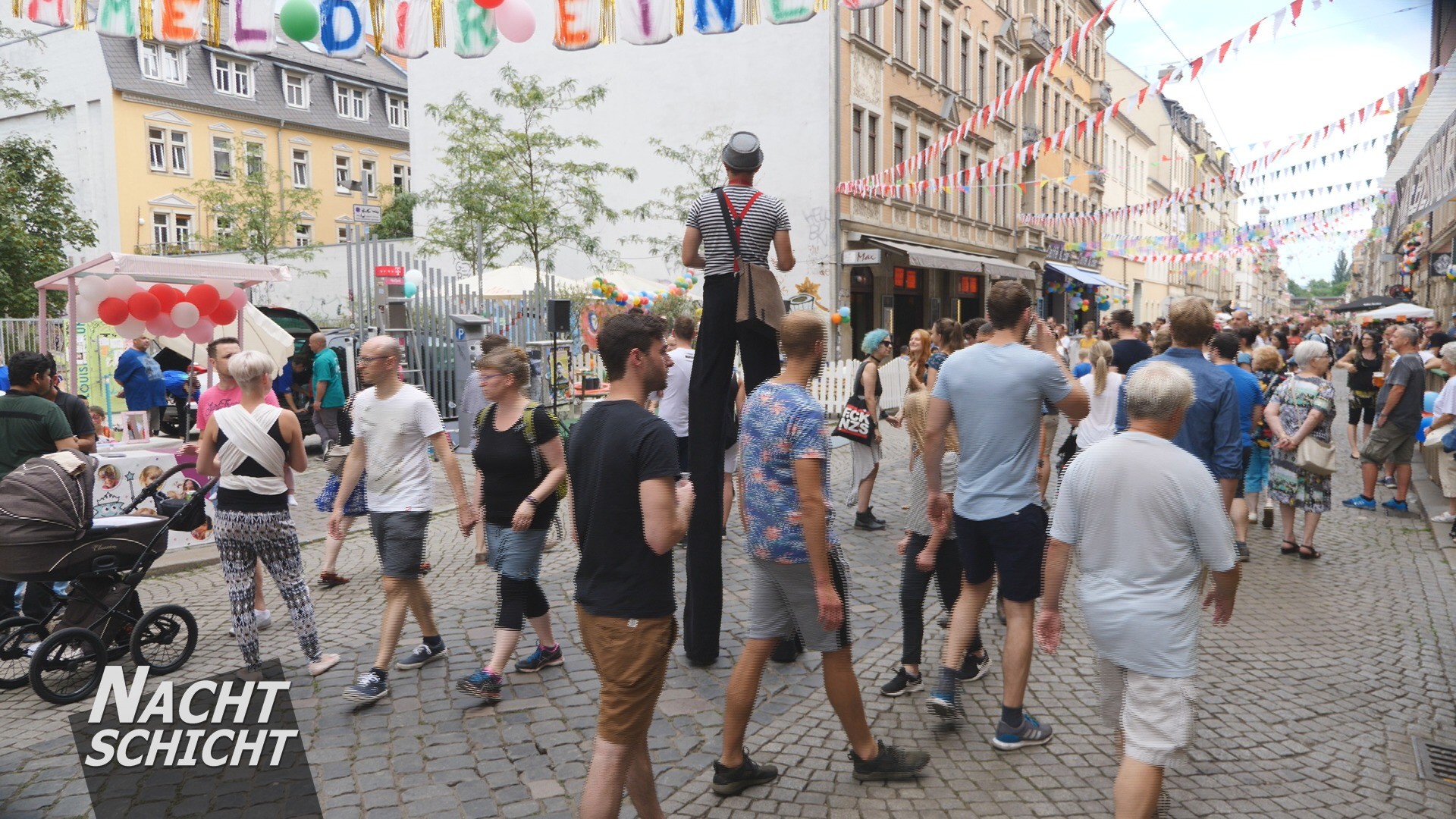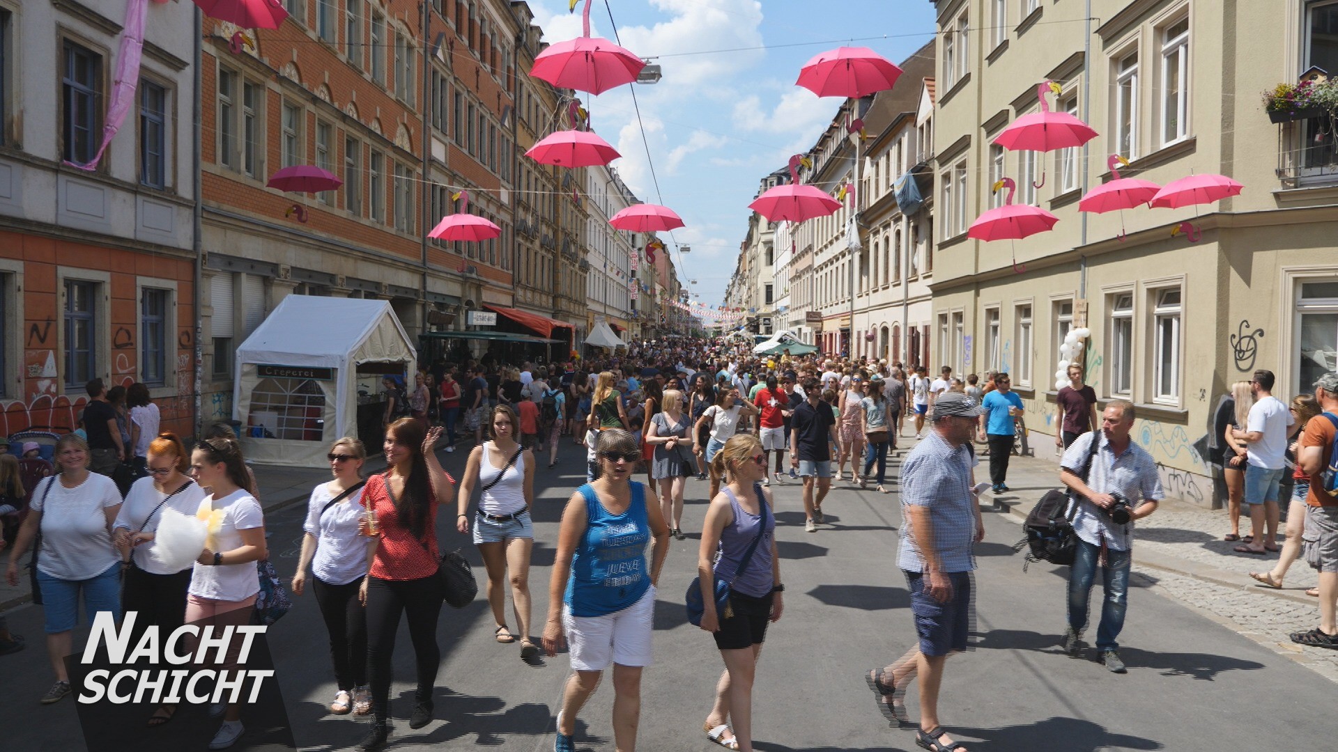 Rund 150.000 Menschen haben am Wochenende die Nacht zum Tag gemacht. Auf Dresdens Stadtteilfest "Bunte Republik Neustadt" ging es dieses Jahr wieder schräg, laut und auch familär zu. Erstmals gab es neben den über 140 Einzelständen auch zehn große Inseln. Auf einer davon war Sophia Matthes mit der Nachtschicht unterwegs. Mehr im Video: